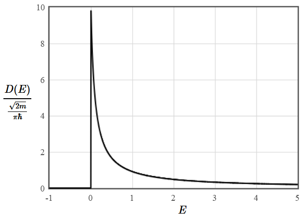 $$D(E) = \frac{1}{L}\frac{dN(E)}{dE} = \frac{1}{\hbar\pi}\sqrt{\frac{2m}{E}}.$$
