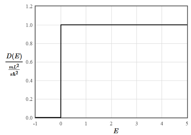 $$N(E) = \frac{mL^2}{\pi\hbar^2}E.$$In two dimensions, the density of states is defined per unit area,